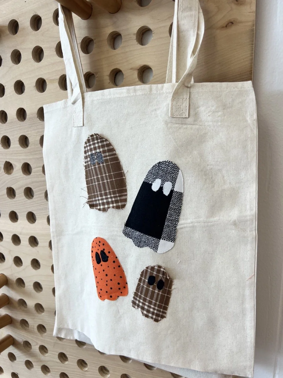 Make your own iron-on patches from fabric that you’ll add to a tote bag.