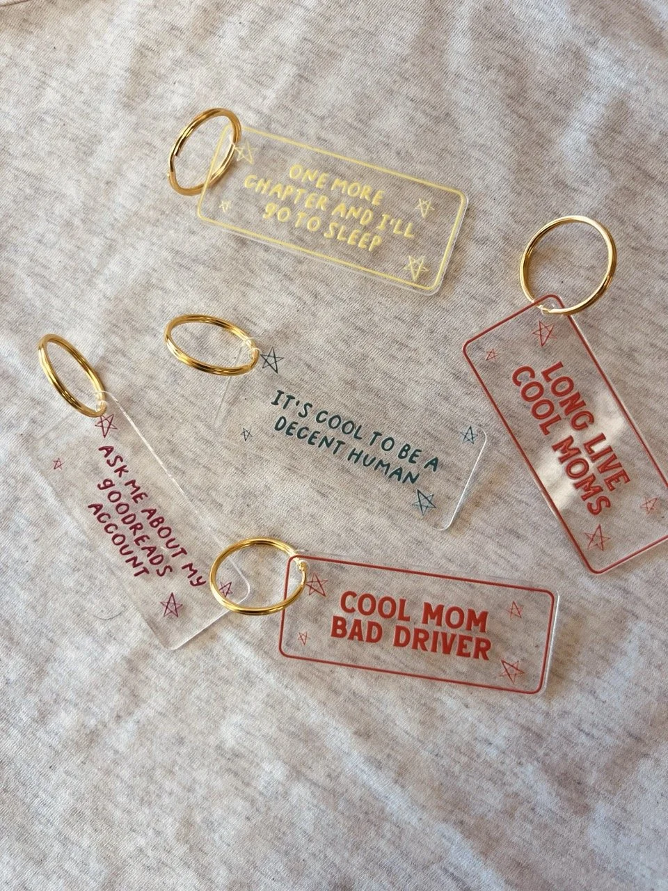 If you’ve ever said “I know it’s late, but they just got to the inn and there’s only one bed”, then this keychain might be for you! Our One More Chapter And I’ll Go To Sleep keychain is the perfect subtle accessory for the book lover in your life! Grab one for yourself and a friend this holiday season, and remember to hydrate and sleep (the book will still be there in the morning, we promise).